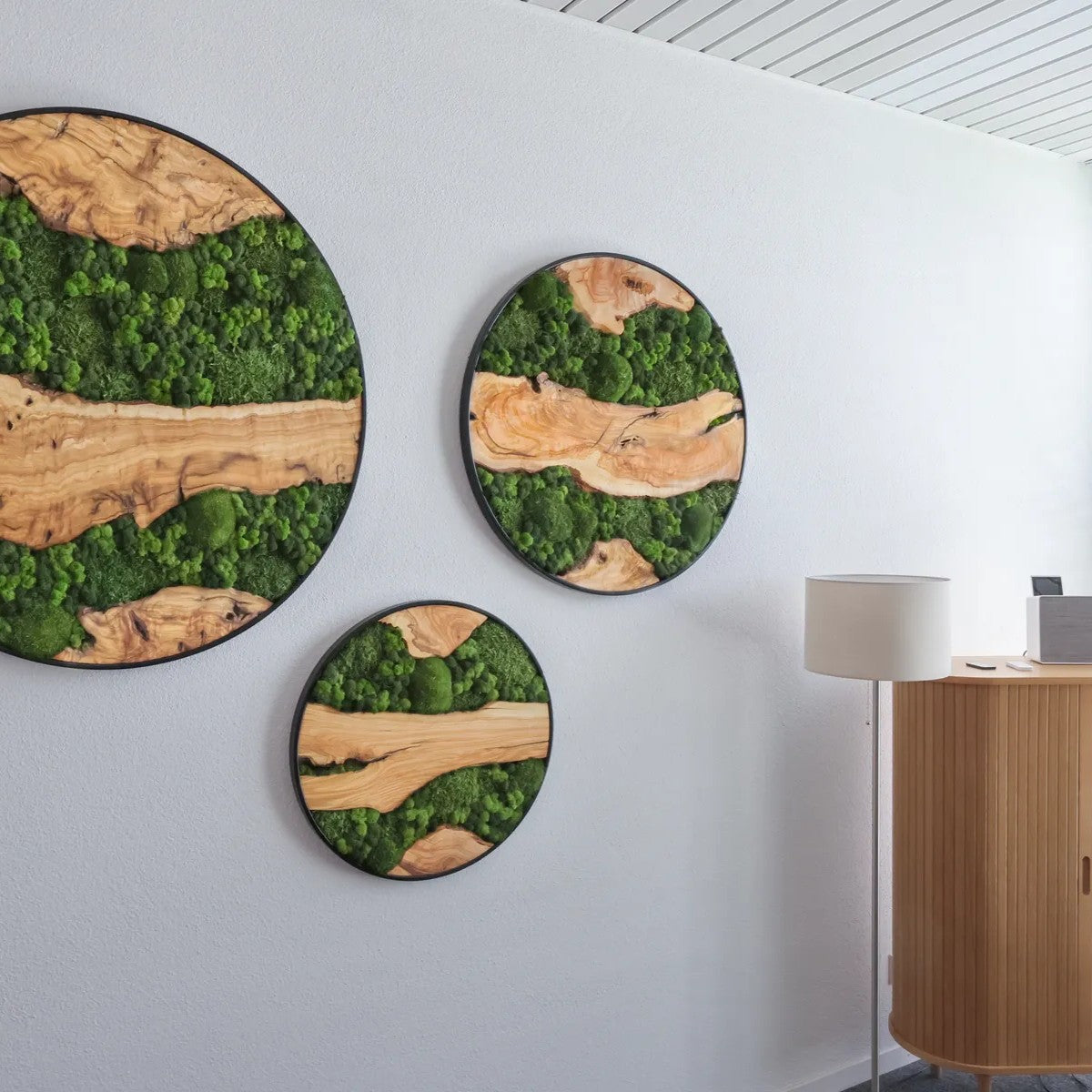 Each frame is a handmade unique piece with its own wood grain and moss texture – designed to enhance spaces naturally and create a calming atmosphere.